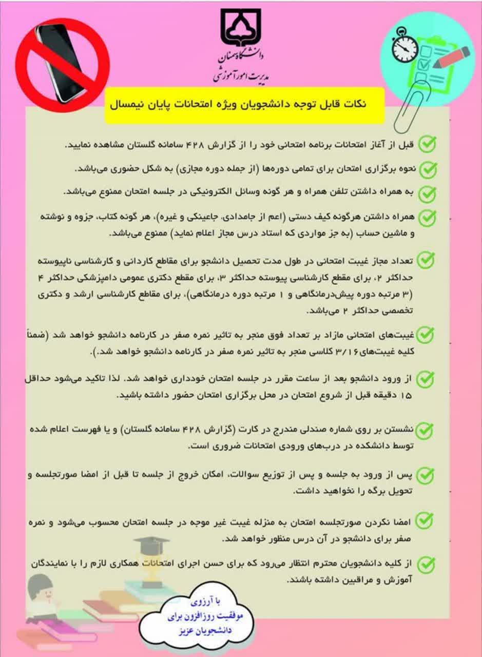 نکات قابل توجه دانشجویان ویژه امتحانات پایان نیمسال